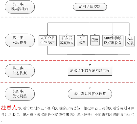 針對河道現狀和治理目標,中科水治理將牛首山河道治理分為三步走!